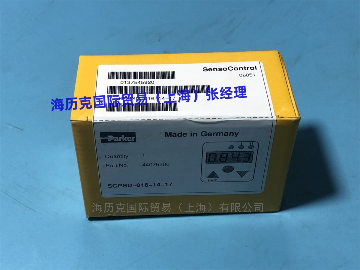 現貨SCPSD-016-14-17派克壓力控制器用途材質和原理:壓力控制器集壓力開關、壓力傳感器和顯示設備的功能于一身:具有顯示壓力(壓力計),開關量輸出,模擬信號功能,模擬輸出可獨立設置參數,0/4...20 mA 輸出值,可設置起始壓力和最終壓力。